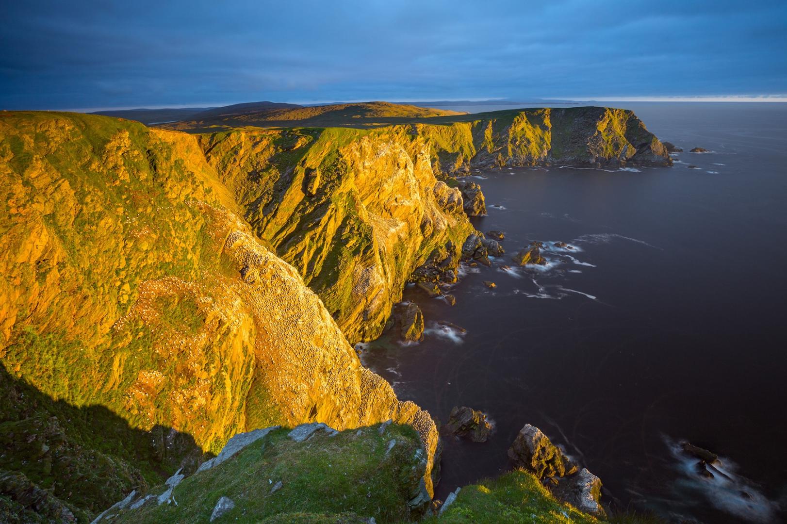 Wenn sich ein schöner Sonnenuntergang ankündigt, fahren wir aber zuerst noch zum Sumburgh Head, um Papageientaucher zu fotografieren.