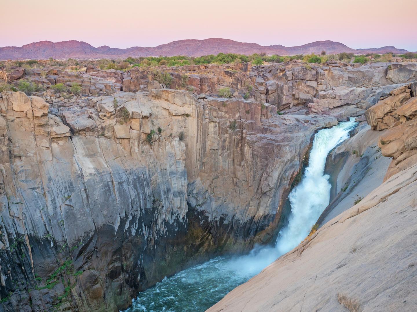 Der heutige Tag steht ganz im Zeichen der beeindruckenden Augrabies-Wasserfälle. Über Jahrmillionen grub der Oranje-Fluss hier eine bis zu 200 Meter tiefe und 18 Kilometer lange Schlucht in den Granit. Am Hauptfall stürzen die Wassermassen des Flusses 56 Meter in die Tiefe. Die nahegelegenen Bridal Veil Falls erreichen sogar eine Fallhöhe von 75 Metern. Somit zählen die Augrabies-Fälle zu den sechsthöchsten der Welt.